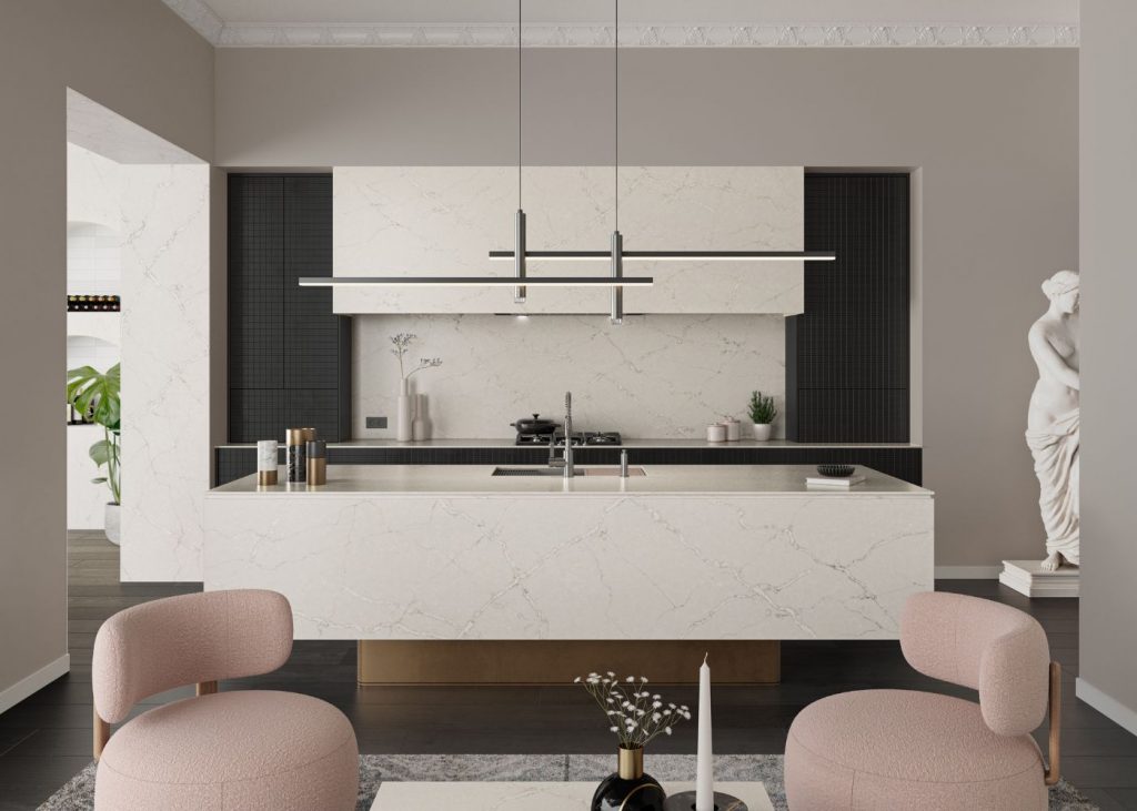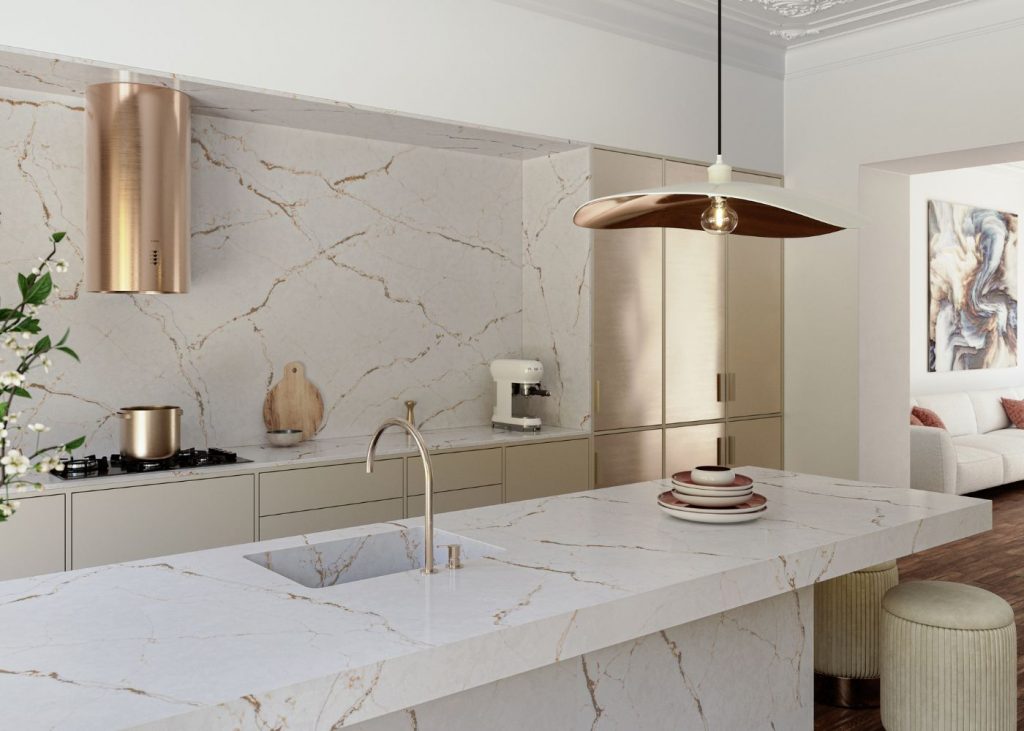 Engineered from up to 93% natural quartz particles mixed with resins, quartz worktops offer exceptional durability with a contemporary finish and diverse design options.