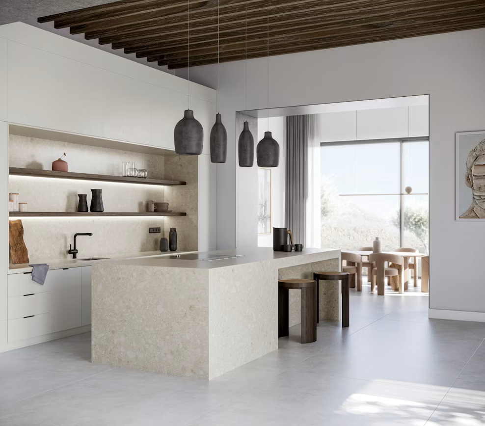 Current kitchen worktop trends include quartz, porcelain, and natural stone with subtle veining. Matt finishes and neutral tones such as beige, grey, and soft white are very popular. Slim profiles and waterfall edges are also in demand. Sustainability and low-maintenance materials continue to influence choices.