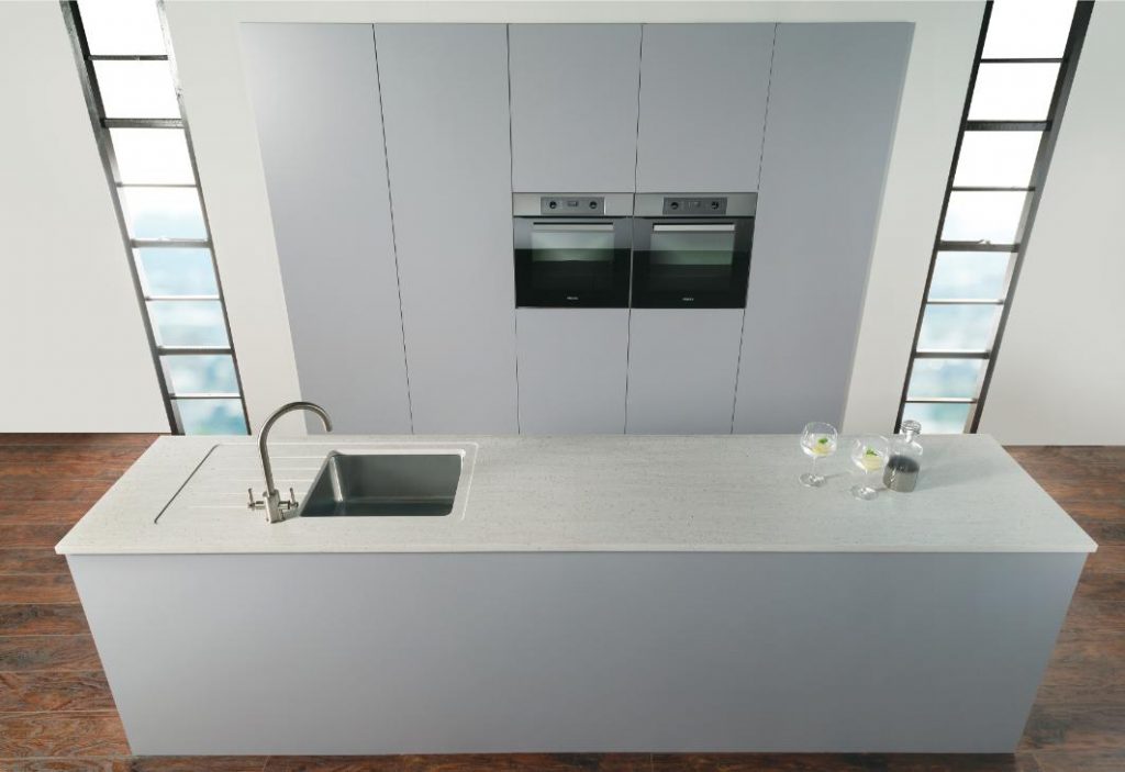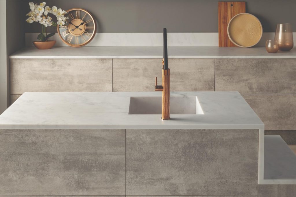Made from crushed quartz, porcelain, and glass, sintered stone is the most durable worktop material available with the highest resistance to heat, staining, and scratches.